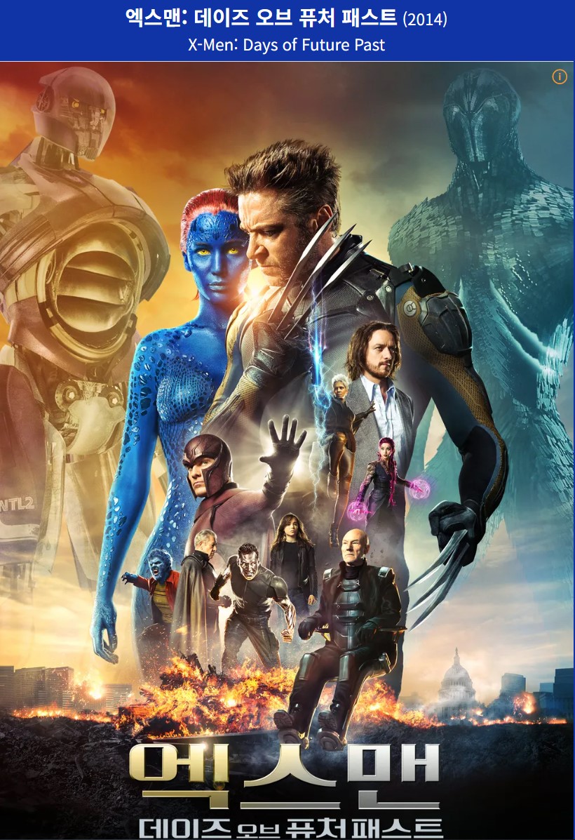 '엑스맨: 데이즈 오브 퓨처페스트' 는 시간여행이라는 흥미로운 소재를 통해 관객에게 강렬한 액션과 감동을 선사한 작품입니다. 과거와 미래의 융합, 캐릭터들의 성장과 갈등, 그리고 독창적인 영화적 표현은 이 작품이 단순한 블록버스터를 넘어서는 이유입니다. 기존 시간여행 장르와는 비슷하면서도 다른 느낌의 스토리와 해석으로 이 영화는 엑스맨 시리즈 팬뿐만 아니라 시간여행 영화에 관심 있는 누구에게나 추천할 만한 작품입니다. 시간여행에 관심 있는 사람이라면 지금 바로 감상해 보세요!